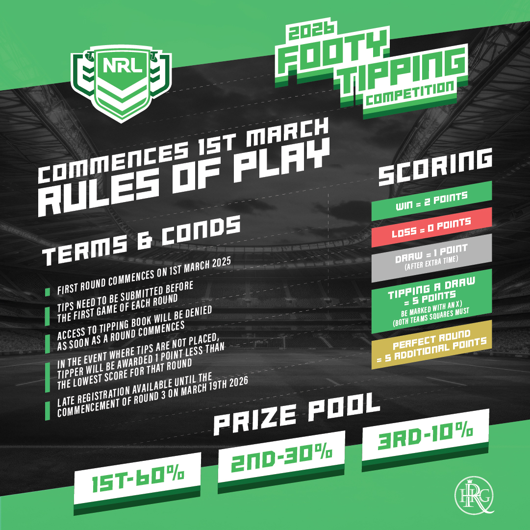 Predict the winners, climb the leaderboard, and score bragging rights. Are you ready for the ultimate footy challenge?🏉🔥Registrations are now open, $20 to enter, first round 1st of march.